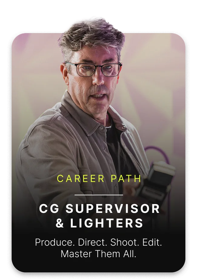 The CG Supervisor and Lighters Career Path explores blending VFX with practical shooting, mastering green screens, and shaping light with modifiers, diffusion, and bounce. Led by Shane Hurlbut, ASC, it covers diverse lighting environments, beauty techniques, lens storytelling, and color theory. Case studies reveal depth, contrast, and cinematic visual storytelling.