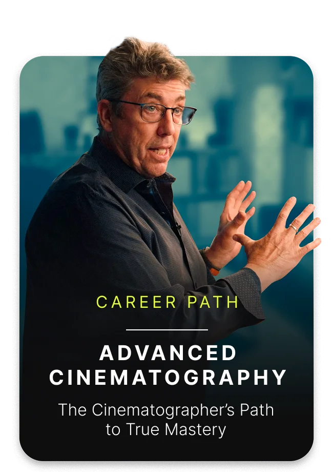 The Advanced Cinematography Career Path, led by Shane Hurlbut, ASC, teaches mastery beyond technique. Learn to market yourself, lead large sets, and navigate industry politics. Develop a signature visual voice, advanced color and composition skills, and dissect complex productions. Gain confidence, artistry, and authority to define and elevate your craft.