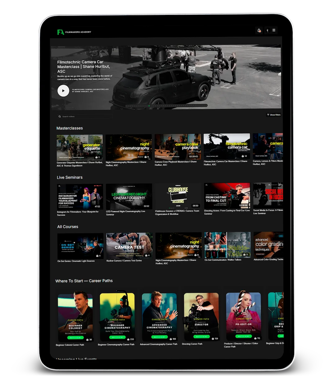 Learn filmmaking from the industry's best with a 1,000+ hour library of professional courses, masterclasses, and career roadmaps.
